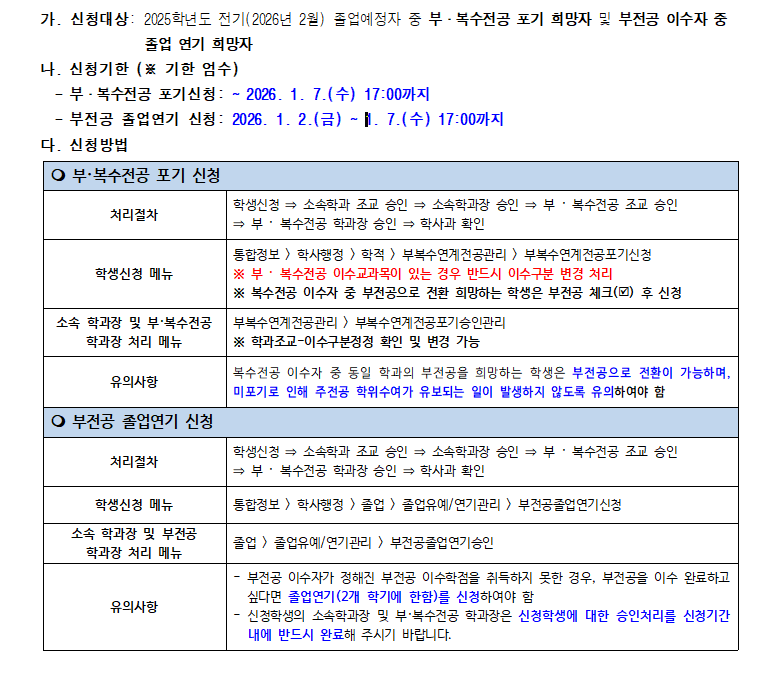 2025학년도 전기 졸업예정자 부·복수전공 이수지도 협조 요청 및_부전공 졸업연기 신청 안내.pdf