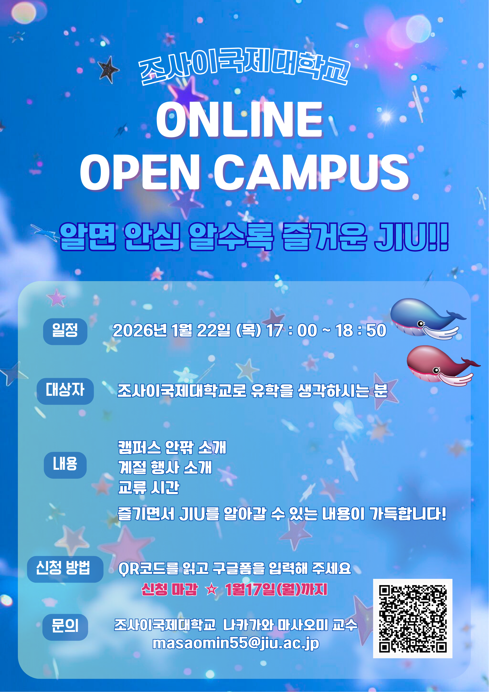 조사이국제대학 온라인 오픈 캠퍼스 개최 안내 (2026.1.22.)