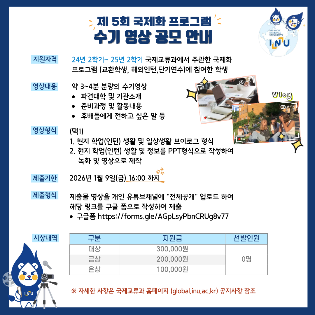 ※ 개인정보 활용동의서 구글폼에 업로드, 업로드 불가시 이메일 제출(global@inu.ac.kr)