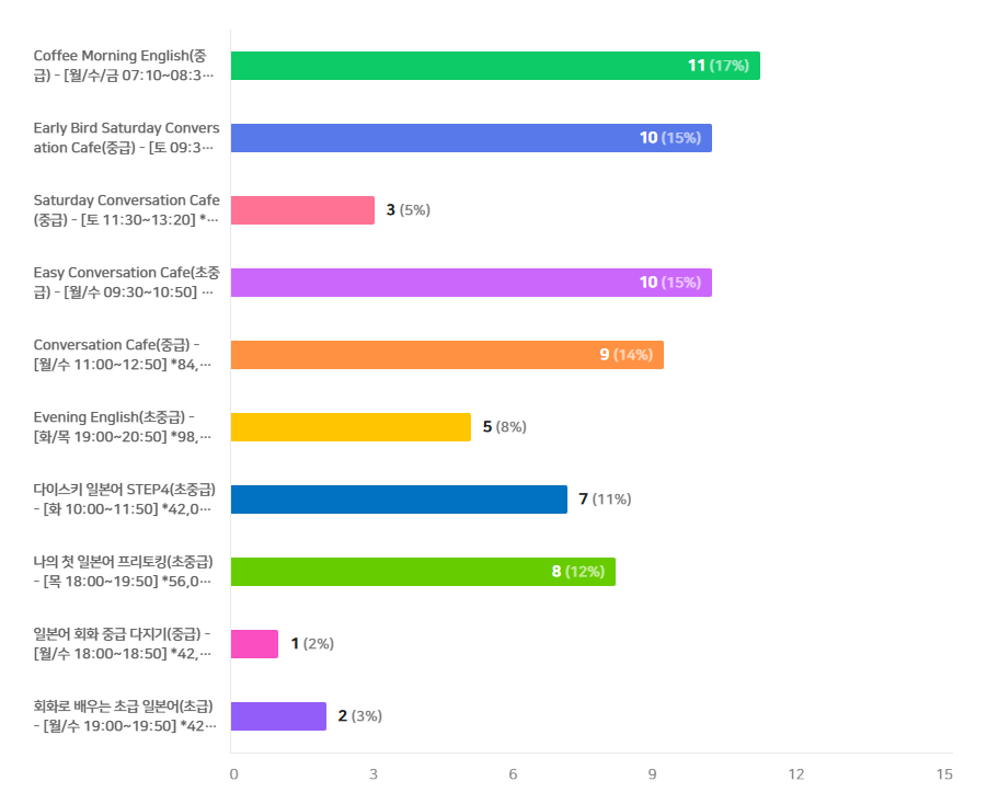 현재까지 강좌 신청자 수를 아래와 같이 안내드립니다.